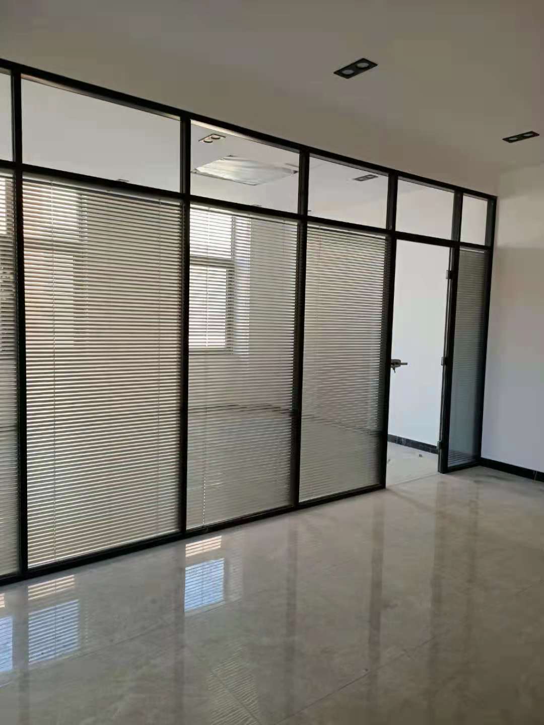 3、玻璃隔斷門框內側預裝有密封條,隔聲效果及密封性提高。更可加裝門底密封條,使隔音系統完成無缺。玻璃隔斷高質量的進口百葉簾片可安裝在兩層玻璃內部,不容易臟,免清洗。